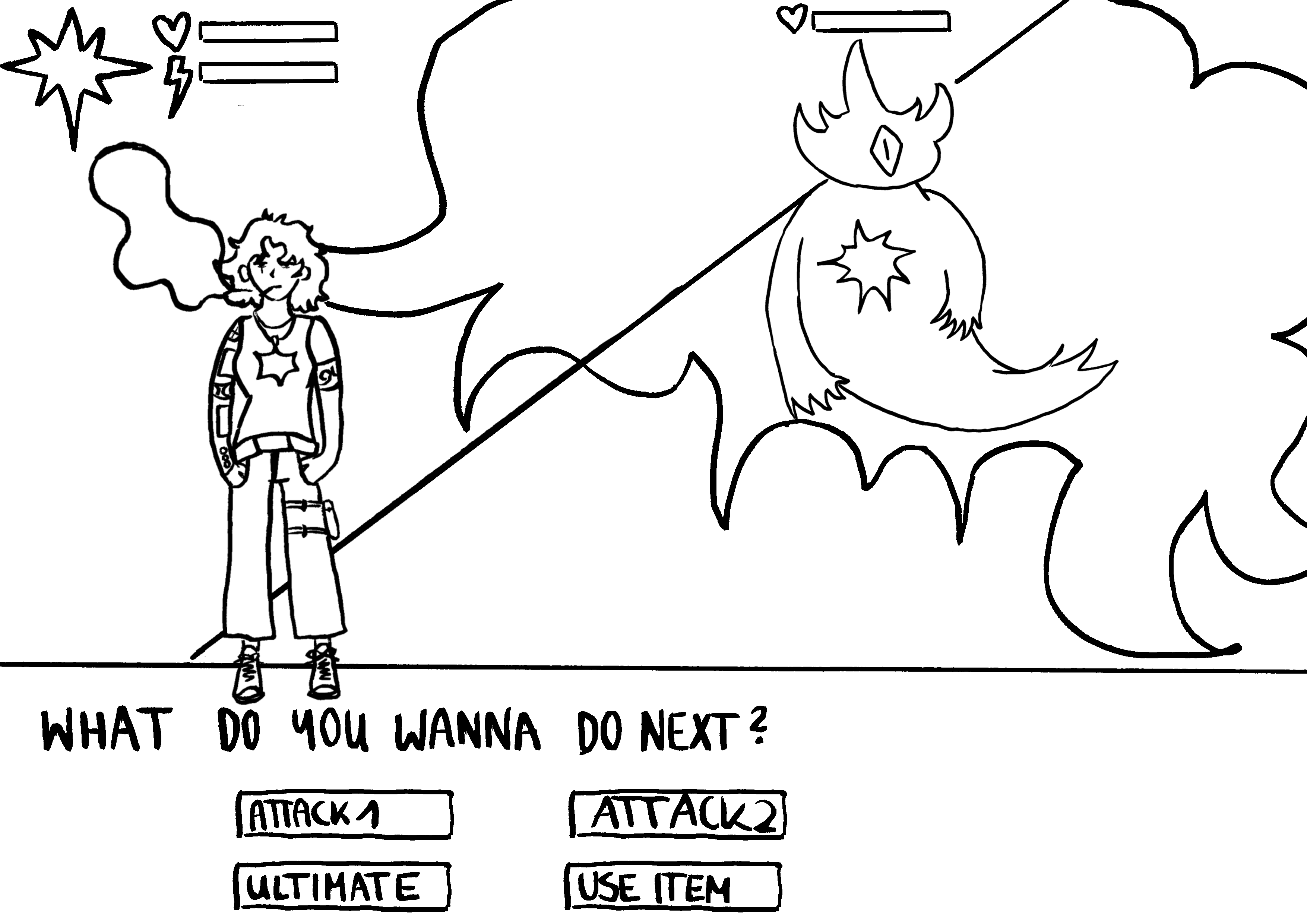 - Die Kampfszenen sind turn - based. Hierbei muss man auf seine Ausdauer und Lebensanzeige achten. Man muss dunkle Gestalten im Verlauf des Spiels besiegen, um zum nächsten Kapitel fortzuschreiten.